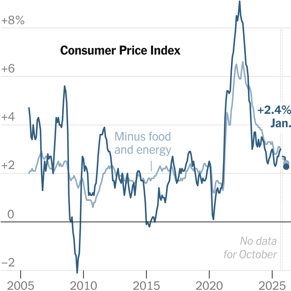 news U.S. Inflation Eased at Start of the Year By AdminFebruary 13, 2026Less 1 min read25 Views0 The Consumer Price Index fell in January to 2.4 percent from 2.7 percent a month ShareTweetPinShare Previous PostAu Pair Juliana Peres Magalhães Sentenced to 10 Years in Banfield Double Murder Case Next PostEnterprise AI startup Cohere tops revenue target as momentum builds to IPO: Investor memo Leave a Reply Your email address will not be published. Required fields are marked * Save my name, email, and website in this browser for the next time I comment. You May Also Like March 1, 20260 Comments What travelers need to know after the U.S., Israeli strikes on Iran October 22, 20250 Comments India to cut Russian oil purchases, U.S. to slash tariffs as they near trade deal: Indian media report September 21, 20250 Comments Trump Demands That Bondi Move ‘Now’ to Prosecute Foes September 16, 20250 Comments Trump sues The New York Times for $15 billion, alleging defamation and libel